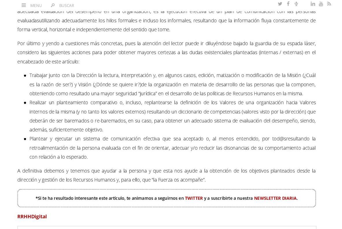 Publicación en la editorial de la revista digital RRHH Digital en torno de la evaluación de las Personas en las organizaciones.